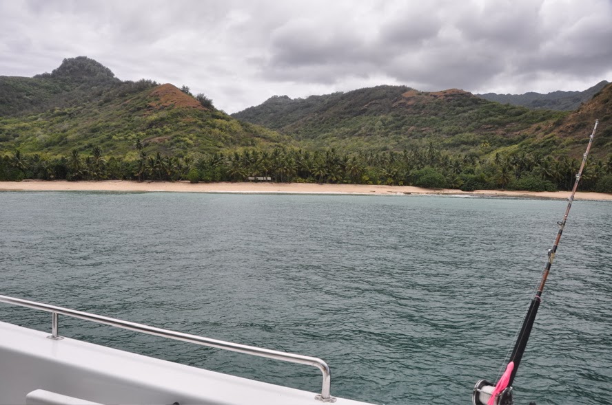 Motopu is a bay exposed to the elements. Henri is the only local water taxi who endeavors docking there. Most of the time, he gets close enough to the dock and tosses the packages to waiting hands ashore. The passengers either swim to shore or are collected by outrigger canoes. When we found out, we were wondering how we were to collect Dr. Pascal and his sidekick, midwife Helene, and all their equipment. But! Who shows up on a panga, if not Henri and the docs. We’re inside the bay and heaving terribly. Henry’s panga is heaving to our side, our phases in total disconcert, Henry up, Domino down, and there’s no way we’ll manage to transfer passengers. No matter! Henri and his crew toss over our side rail backpacks, bags of medical supplies, ultrasound, probes, and other expensive equipment, which we stow delicately. Meanwhile, Pascal and Helene have stripped down to their briefs, jumped over the side of the panga, and are swimming toward our swim-ladder. Hey, you docs in your cozy practices, suits and ties, would you do THAT to take care of your patients? A rinse, a towel, a hot coffee, and Pascal had 2 fishing lines out as we trolled the Canal du Bordelais and the west coast of Tahuata.